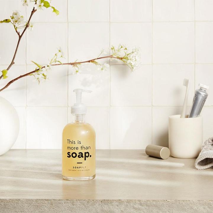 We're tackling the plastic problem from your sink. Soapply is bottled in recycled glass that can be reused and refilled.